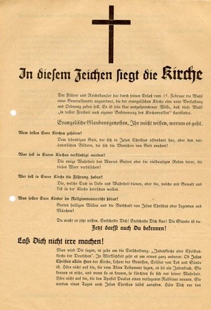 Verder luidt er een verhaal dat er een strijd was tussen 2 kerken, namelijk de Bekennende Kirche en de Deutsche Christen. Dit is gedeeltelijk waar. Één derde van duitsland hoorde bij de Deutsche Christen en 20% hoorde bij de Bekennende Kirche.